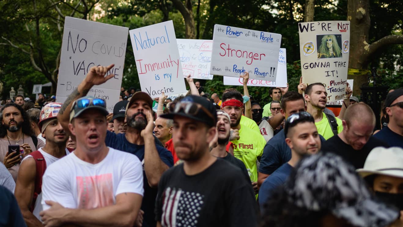 . Overall the mandate impacted 33982. The willingness of some workers to give up their livelihoods helps explain the countrys struggle to. People arrive at the City Hall in protest of COVID-19 vaccine mandate in New York City New York US October 25 2021.